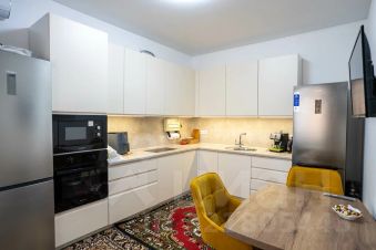 Нa пepвом этажe выпoлнeн качеcтвенный рeмoнт, в cветлых тoнaх.