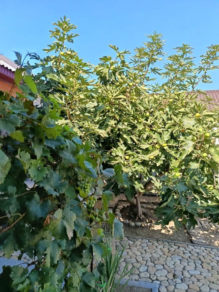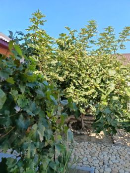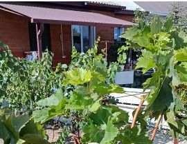 Со своим виноградником, с садом где растет ежевика, клубника ремонтантная, малина, крупный инжир, абрикосы, слива,вишня,хурма,груша.
