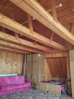 На первом этаже - две спальных комнаты с мебелью и столовая, в которой также можно спать. Также на первом этаже расположен санузел и кухня. Выход на второй мансардный этаж - по лестнице внутри дома.