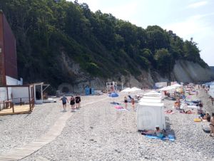 До моря - несколько минут на машине. Пляж из мелкой гальки, море чистое, так как в Агое нет промышленности и летом отдыхающих не так много, как в других курортных местах Черноморского побережья.