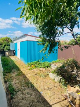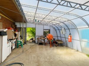 На территории есть дополнительные постройки: теплица, навес, металлический блок 30 кв.м с тремя отдельными отсеками - удобное и долговечное решение для хранения). Подведена вода для летнего душа.