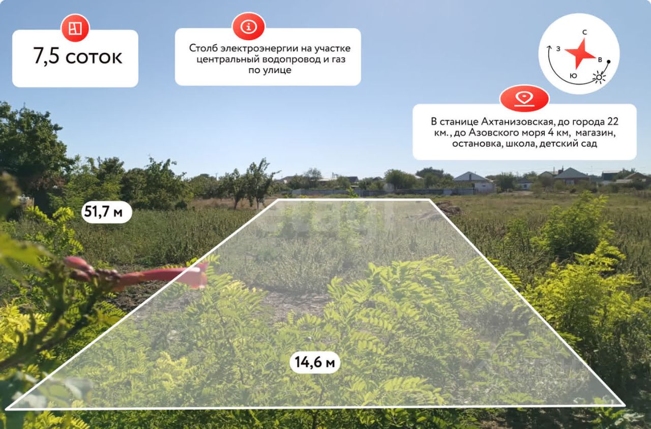 Земельный участок в центре станицы Ахтанизовская предлагает уникальную возможность для строительства собственного дома в развитой локации с полным комплексом инфраструктуры.