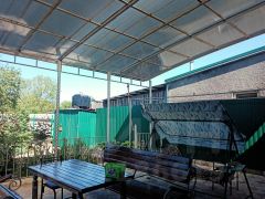 Двор дома уложен плиткой, весь накрыт навесом и имеет оборудованную зону отдыха. Участок земли ухожен и содержит множество плодово-ягодных насаждений, которые создают уютную атмосферу и приятный аромат. На участке также есть хоз постройка для хранения хоз инвентаря и просторный гараж.