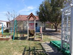 Дополнительные постройки на территории - хозяйственный блок и гараж, детская площадка и оборудованная беседка с мангальной зоной.