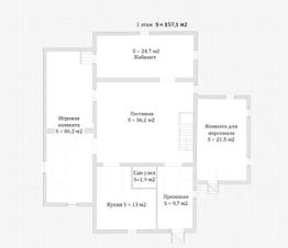 Первый этаж: холл, просторная гостинная,кабинет, игровая, кухня, комната для персонала.