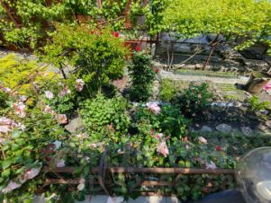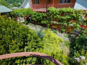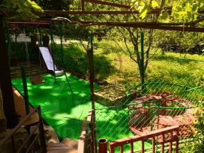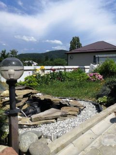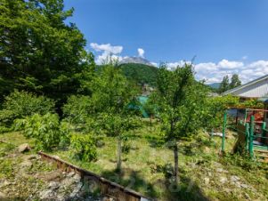 Чудесный вид на поселок и горы . Территория облагорожена, утопает в зелени и экзотических деревьях, розарий, виноградник, большое количество фруктовых деревьев ( инжир, яблони, черешня, вишня )