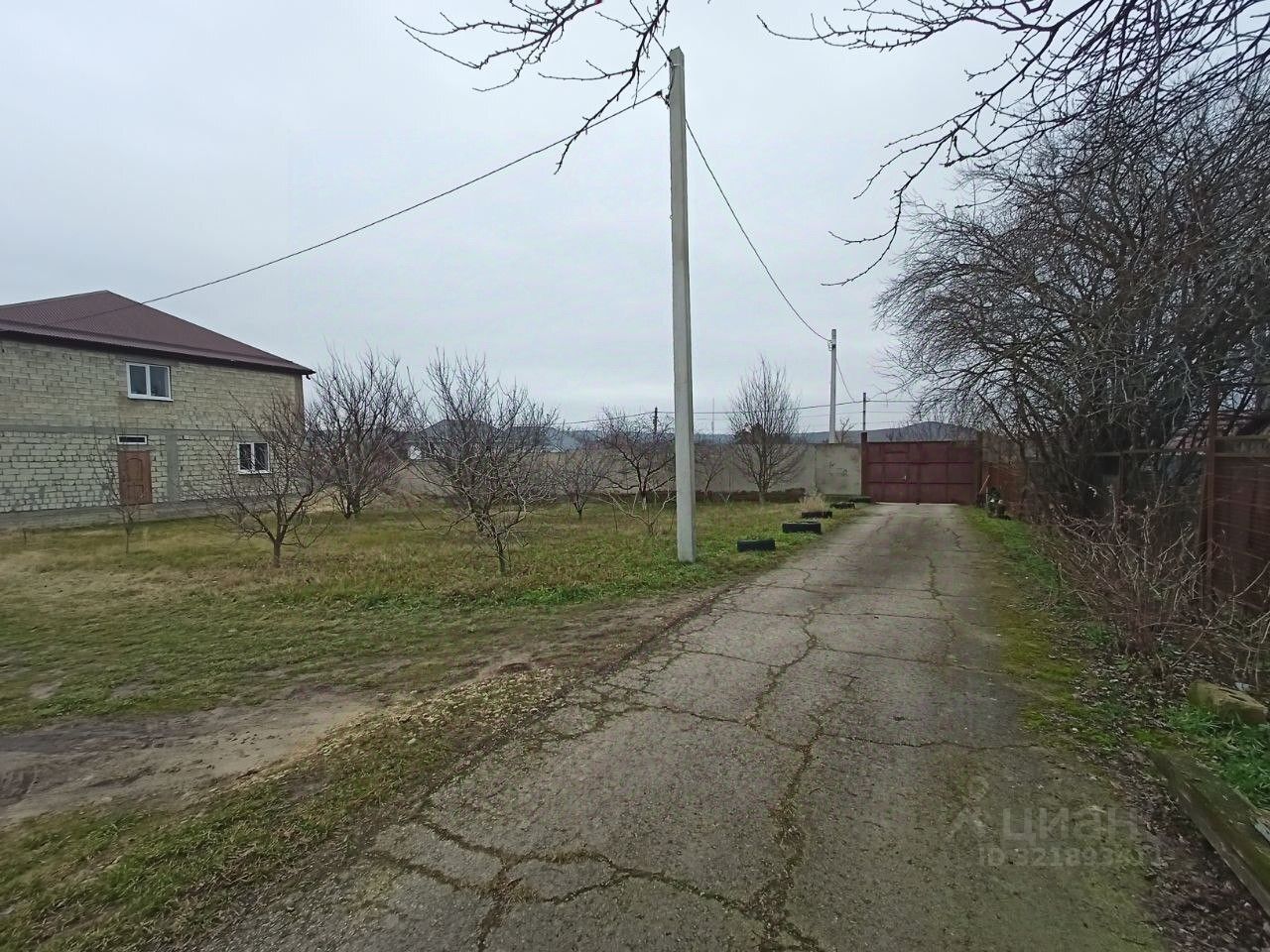 Фасад 17,5 метров, забор из бетона с железными воротами.
