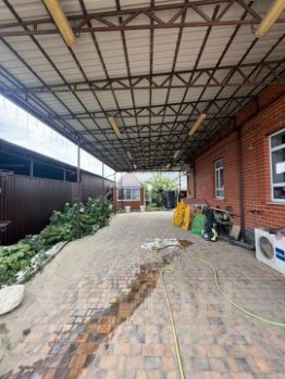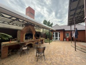 Двор очень благоустроен, во дворе плитка, имеется мангальная зона, зелень, закрытая беседка, отдельно стоящая функционирующая баня, пристройка под все хозяйственные инструменты, во дворе имеется навес. Хороший забор с кирпичными колоннами.