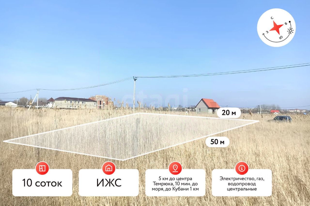 В продаже ровный участок правильной прямоугольной формы в городе Темрюк!