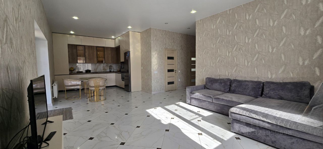 Прихожая, ванная комната, две спальни, зал, кухня-гостиная, трасса. Все коммуникации и все удобства.