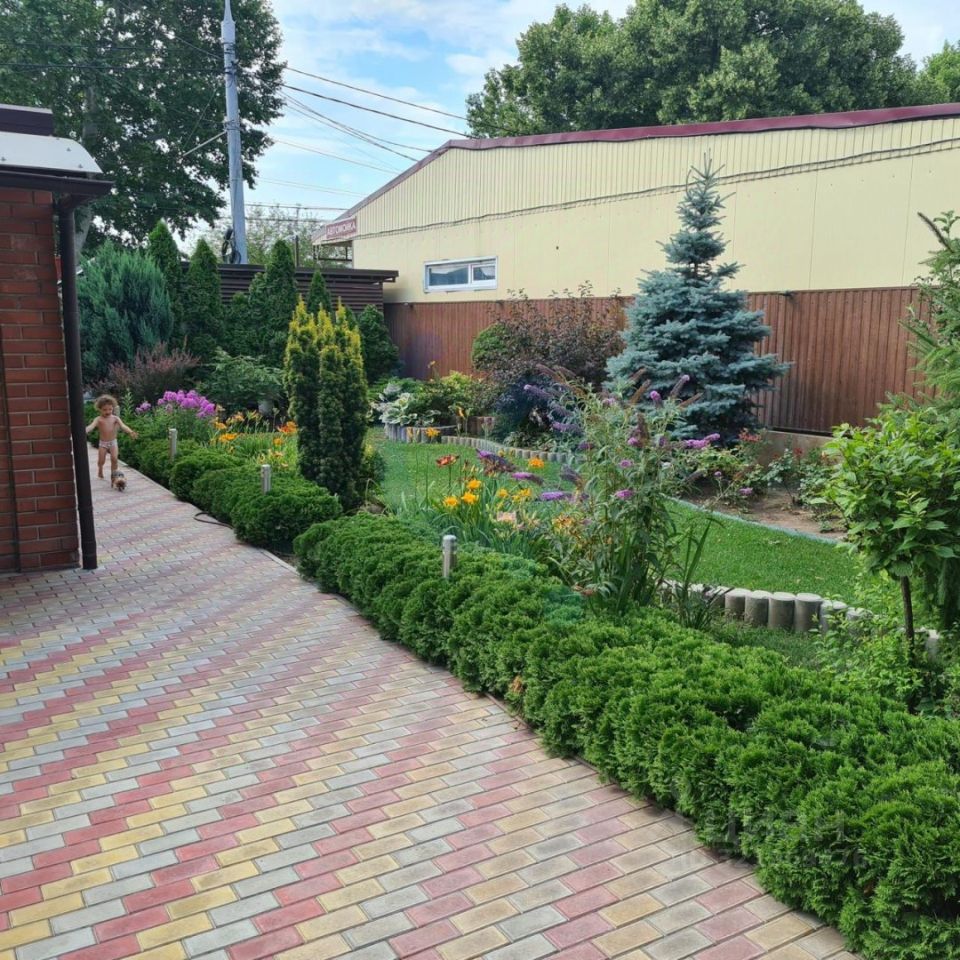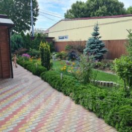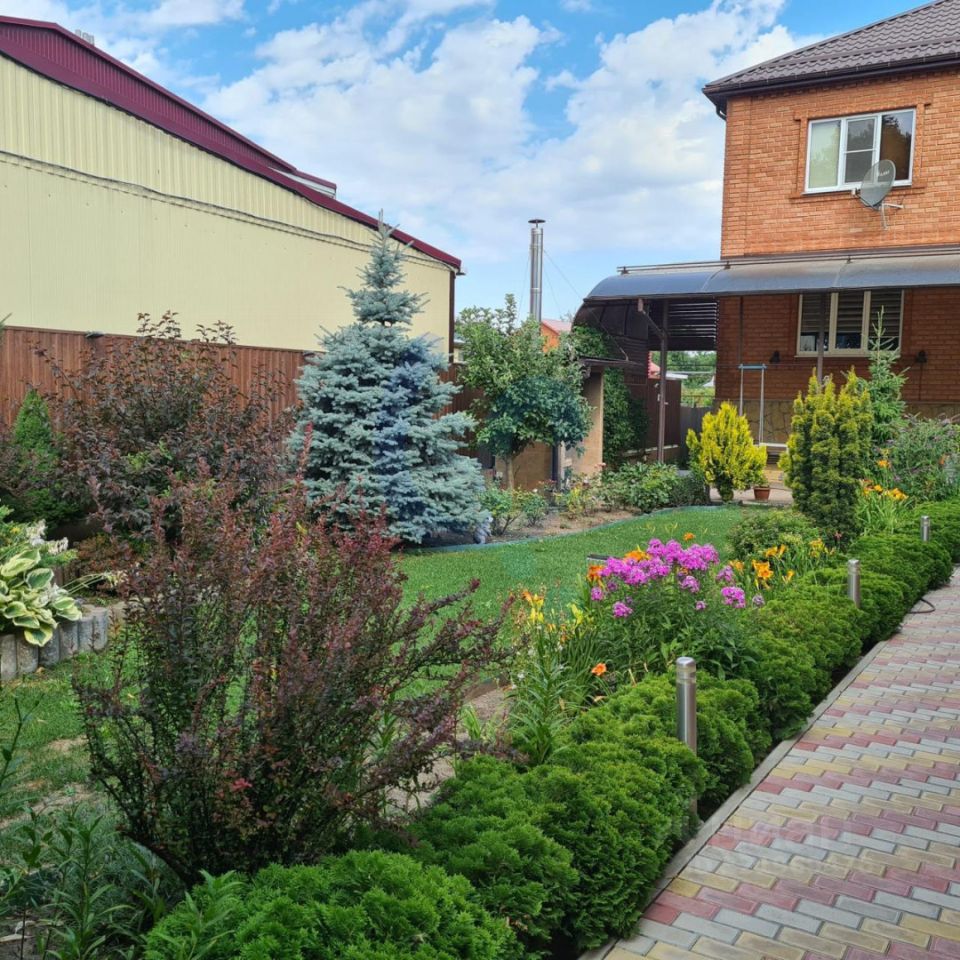 Собственный земельный участок с ландшафтным дизайном и гараж на территории.