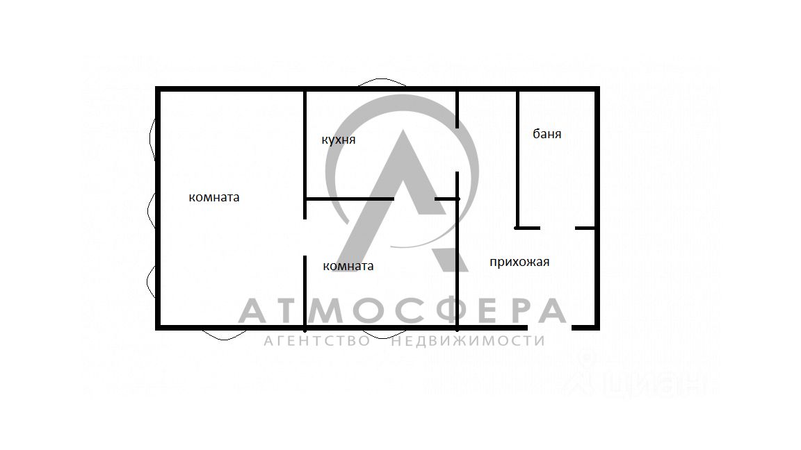 - планировка: прихожая, баня, кухня и 2 жилые комнаты.