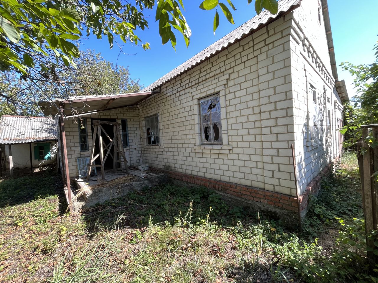 Продаётся хата под снос с недостроенным домом, в ст. Владимирская, по ул. Телеграфная, 84, без удобств, пл. 32,6 кв.м., 1 комната, кухня-столовая, кладовая, прихожая. Отопление печное (газ проходит по участку), вода из колодца, свет. Недостроенный дом деревянный, облицованный силикатным кирпичом, без внутренней отделки, состоит из 2 комнат, кухни, прихожей.. Имеются хозяйственные постройки, гараж, заезд, земельный участок 20 соток в собственности (проведено межевание). Всё необходимое рядом. До города Лабинска 10 минут езды. Под материнский капитал не подходит. Один собственник. Документы в порядке.