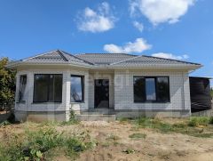 Дом построен на ленточном фундаменте. Стены пеноблок + утеплитель пенопласт + облицовка кирпичом. Крыша утеплена, в качестве кровли металлочерепица. В доме установлен двухконтурный котёл, произведена подготовка под тёплые полы, установлены радиаторы отопления. Также осуществлена электроразводка и вывод под вытяжку.
