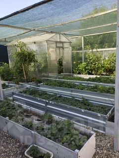 Огромный молодой плодоносящий сад (37 деревьев и кустов), множество хвойных (83) и декоративных растений: можевельники, магнолии, розы и другие. Огород оформлен высокими грядками. Мангальная зона с навесом и качелями, проведена горячая и холодная вода. Гостевой домик со всеми удобствами 30 м.кв. и открытой террасой, оборудован кухней, санузлом, кондиционером и теплыми полами.