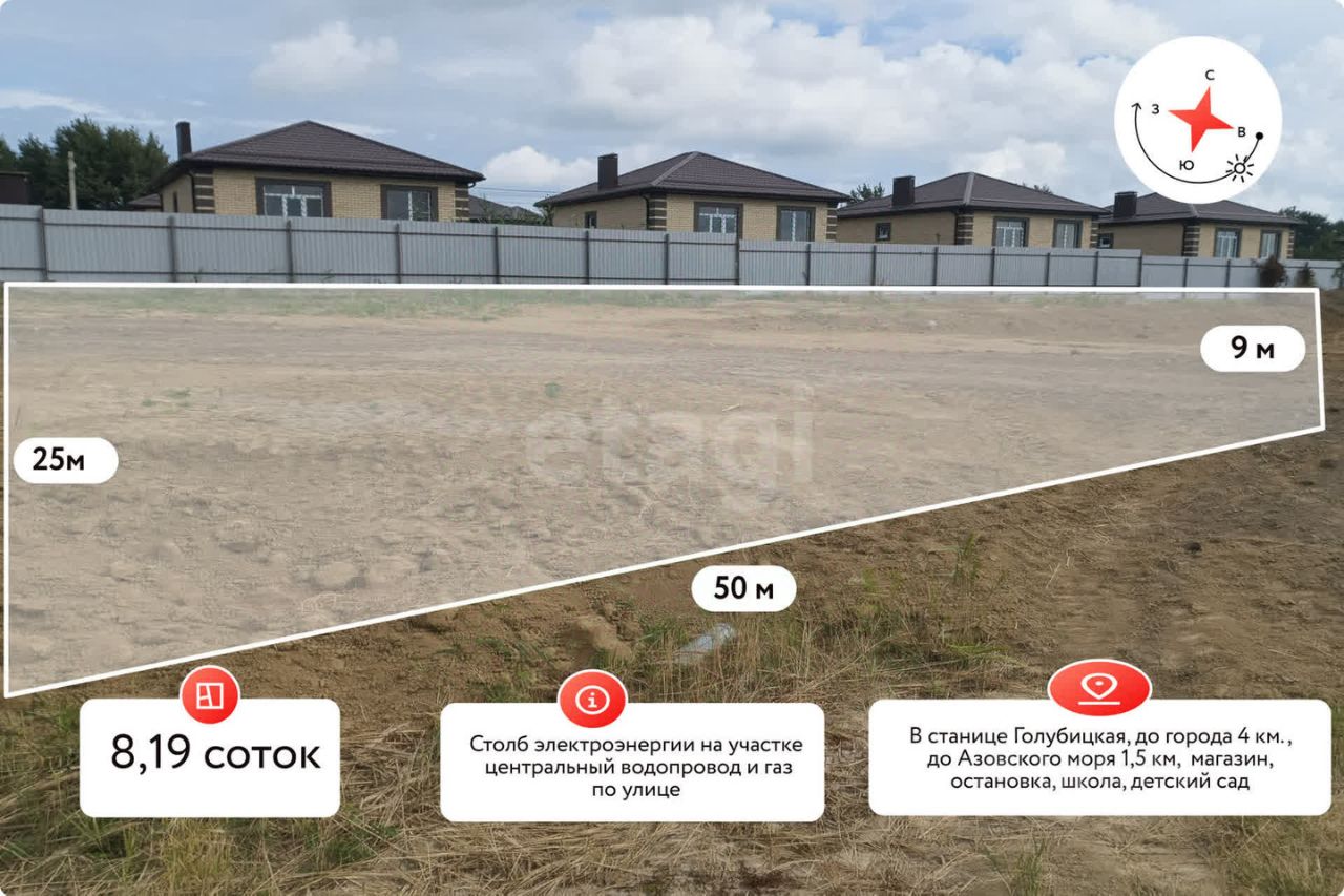 Участок находится в активно развивающемся и перспективном районе станицы, где ведется активная застройка, что подтверждает востребованность и инвестиционную привлекательность локации.