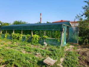 Участок ровный прямоугольный. широкий фасад - 25.5 метра что даёт преимущество для постройки дополнительного дома. На участке много плодовых деревьев, яблони. груши. черешни, персики, инжир и т.д. Плюс в этом году высажено много молодых деревьев. Так же на участке две большие теплицы которые приносят замечательный урожай.