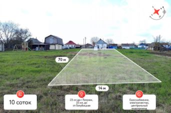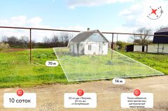 Участок площадью 10 соток, правильной прямоугольной формы, ровный, без неоформленных построек, ухоженный, находится в неподтопляемой зоне, на жилой улице.