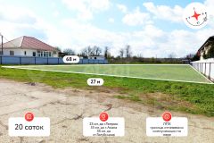 Участок площадью 20 соток, правильной прямоугольной формы, ровный, без неоформленных построек, ухоженный, находится в неподтопляемой зоне, на жилой улице.