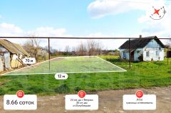 Участок площадью 8.66 соток, правильной прямоугольной формы, ровный, без неоформленных построек, ухоженный, находится в неподтопляемой зоне, на жилой улице.