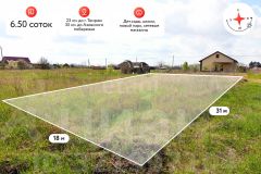 Участок площадью 6.5 соток, правильной прямоугольной формы, ровный, без неоформленных построек, ухоженный, находится в неподтопляемой зоне, на жилой улице.