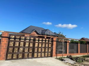Три изолированные комнаты, кухня, гостиная, с/у, коридор. Дом просторный для большой семьи. Облицовка -керамический кирпич. Утеплитель - мин. вата. Фундамент ленточно - свайный. Есть фото внутренних работ.