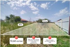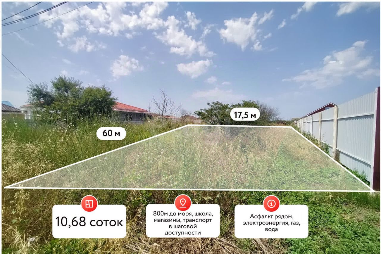Земельный участок площадью 10.68 соток расположен в поселке За Родину в 800 метрах от берега Азовского моря.