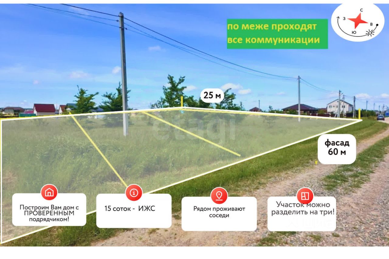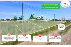 Участок 15 соток, угловой, делится на три. Фасад 60 метров. Район активно застраивается, в этой части располагаются новые, роскошные дома.