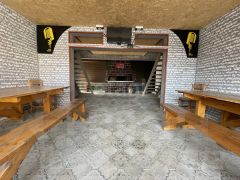 Мангальная зона с караоке и столиками на открытом воздухе. Подсобные помещения, которые можно переоборудовать в дополнительные номера.