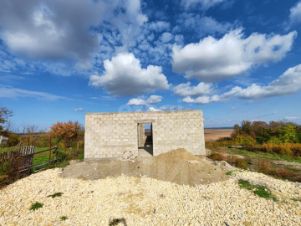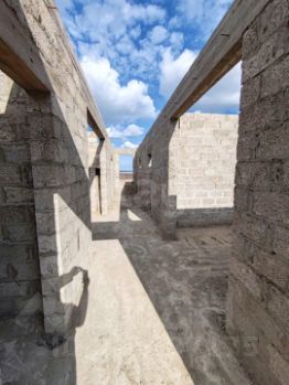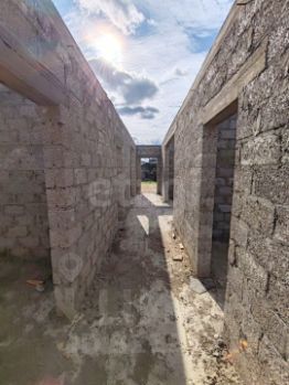 Состояние: заложенный фундамент, возведенные стены и армопояс, разводка коммуникаций (канализация, водоснабжение)
