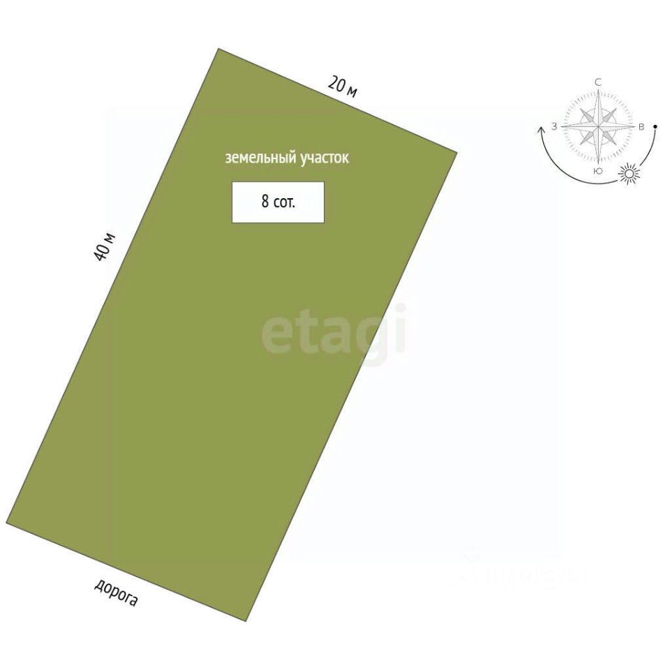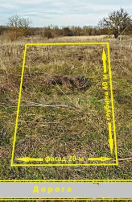 Участок правильной прямоугольной формы, размеры по фасаду 20 метров, в глубину 40 метров.