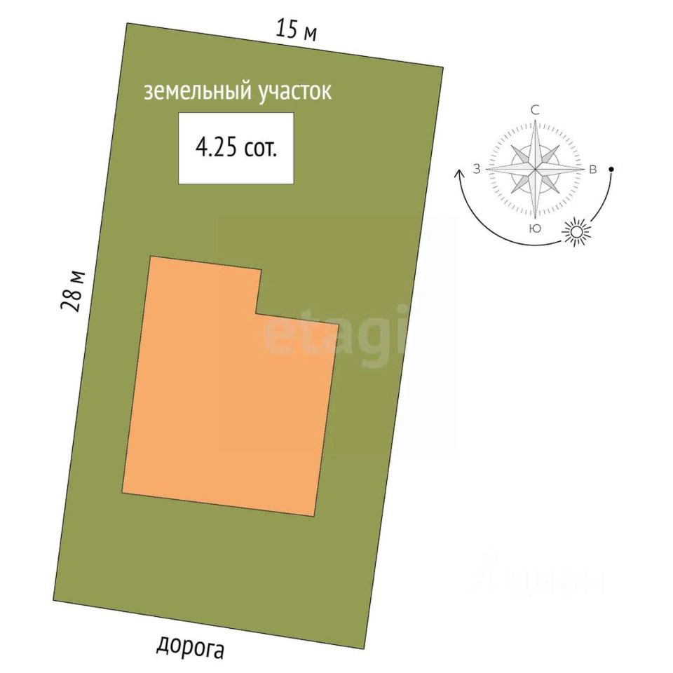 Площадь участка 4,2 сотки. Есть место под мангальную зону, парник, грядки, фруктовые и ягодные посадки и прочие радости частного домовладения.