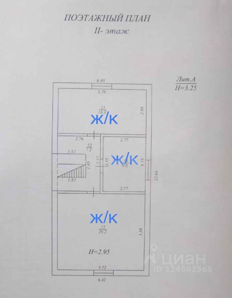 На втором этаже: комната 29,2 м2, 9,8 м2, 16,8 м2.