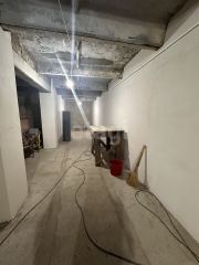 Под всем домом имеется цокольное помещение где можно организовать магазин, спортивный зал, бильярдную, а также жилую площадь.В цоколе установлена дровяная печь, можно сделать каминную комнату. Имеется также ворота для парковки автомобиля. Половина цокольного этажа частично поштукатурена, забетонирован пол. Опорные колонны поштукатурены, усилен фундамент. Сделана вентиляция цокольного этажа, имеются и вентиляторы. Сделан септик на 20 м3, заложены трубы канализации для бани и навеса. Одна сторона цоколя здания поштукатурена и залита отмостка.