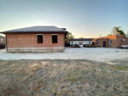 Хоз. постройка - металлическая конструкция, обшитая профлистом, помещение 54 м2, отопление газовым котлом, так же имеется мебель.
