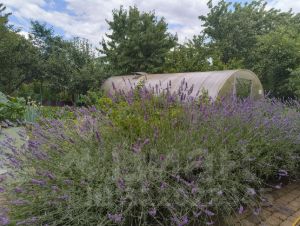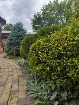 — Декоративное озеленение: лавандовая аллея, можжевельники, голубая ель, зелёный газон круглый год