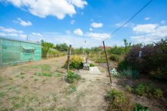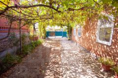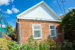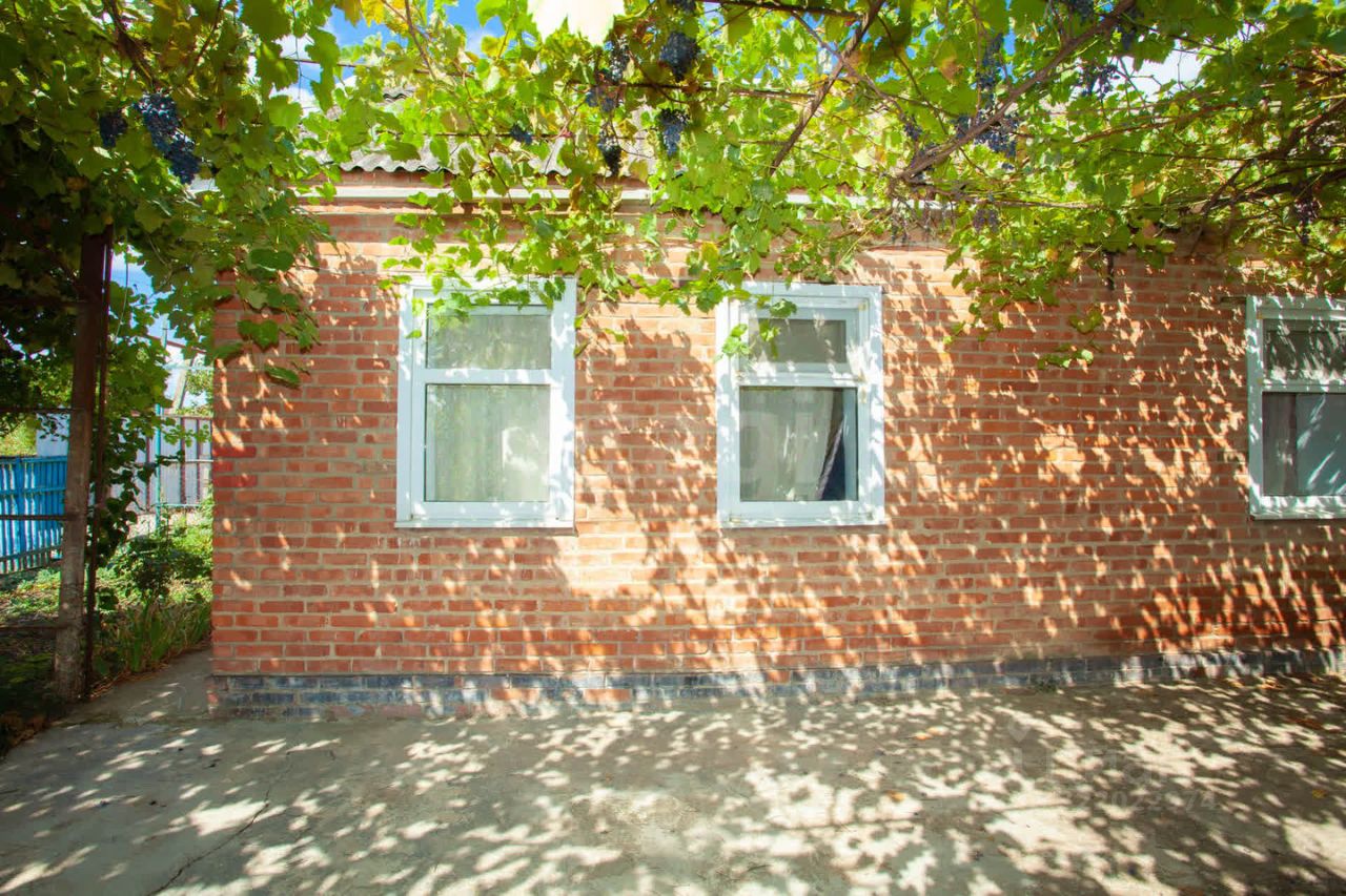 Дом площадью 57 кв. м расположен в спальном районе Славянска-на-Кубани на участке 870 кв. м. Здание в хорошем состоянии, включает две жилые комнаты, кухню, прихожую, ванную. Металлический навес может использоваться как зона отдыха или место для парковки. Участок благоустроен: здесь есть хозяйственные постройки, туалет, плодовые деревья, инжир, виноград. Для полива предусмотрена скважина