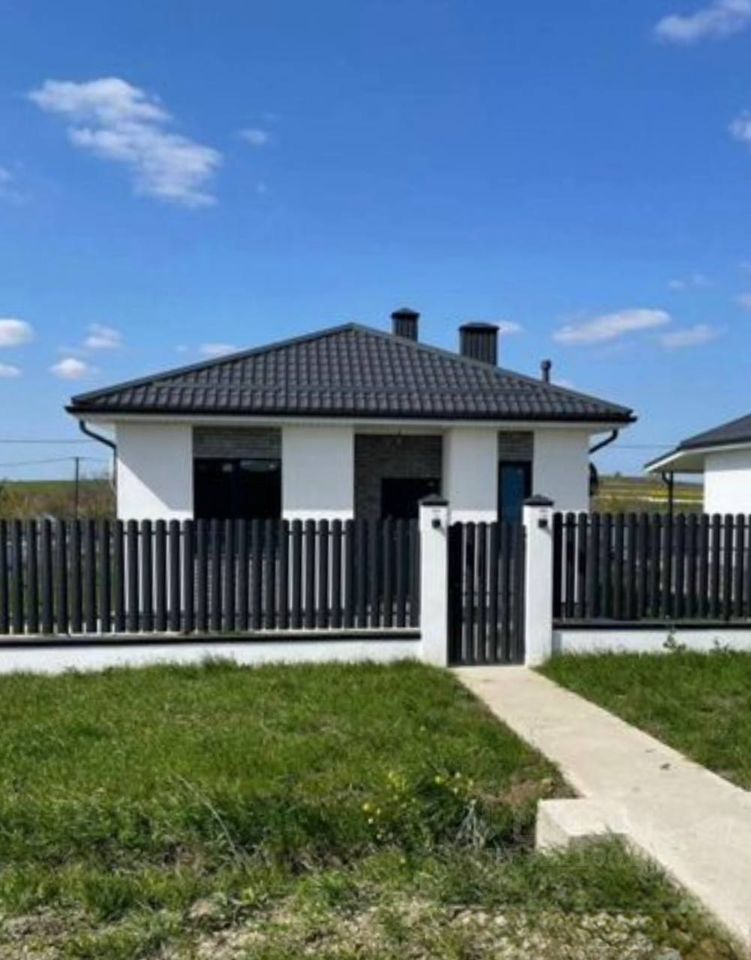 1-этажный дом с двумя спальнями, просторной кухней-гостиной с теплым полом, котельной, крыльцом и террасой с утепленной крышей, построенный на территории современного коттеджного поселка (благоустройство, инфраструктура, дороги, детские и спорт площадки).