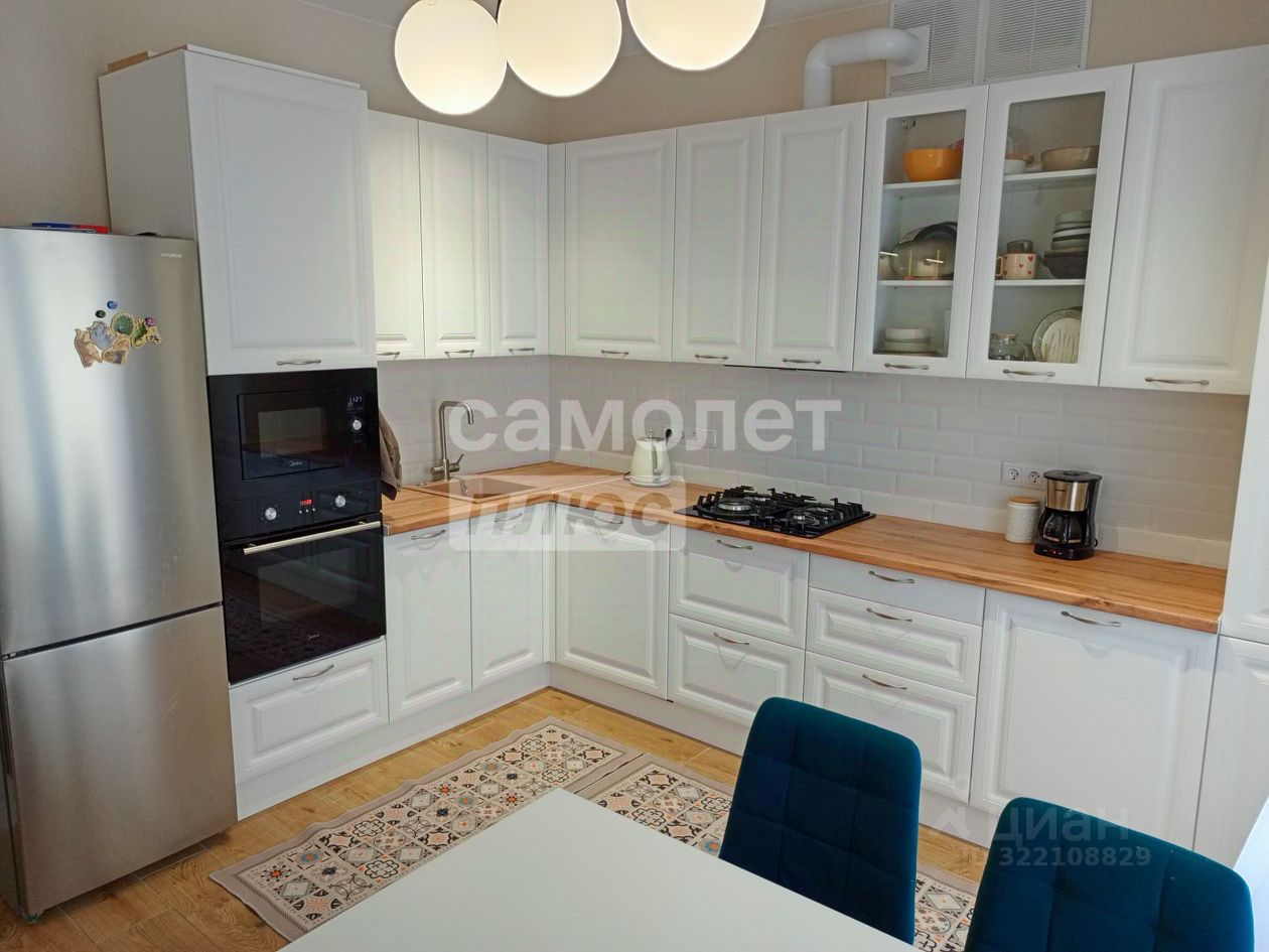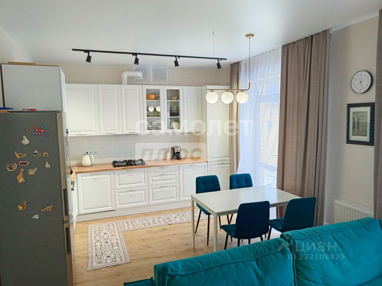 Просторная кухня-гостиная 24,8 кв.м, с высокими потолками и большими окнами обеспечивает много света и воздуха. Сочетает в себе функциональность и стиль, создавая уютную атмосферу для семейных обедов и встреч с друзьями.