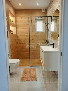 Также на первом этаже расположена просторная комната, площадью 17,7 м2. Санузел с душевой, площадью 5,5 м2.