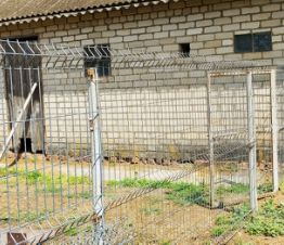 Забор железо с улицы 3 мм. От соседей шифер. С огорода сетка 3D.