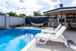 Зона барбекю, выложена профессионалом с учетом всех нюансов, для удобства в приготовлении дополнительно установлена электроплита и раковина с подводом горячей воды и всё это рядом с бассейном, что создаёт уют и незабываемую атмосферу.