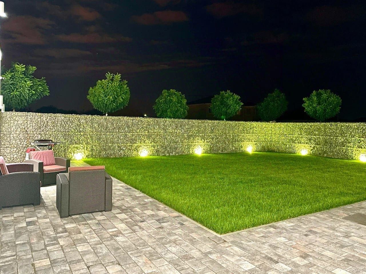* Ландшафт - газон московский Премиум 120 м2, тротуарная плитка 68 м2 во дворе, 230 придомовая территория, декоративные взрослые деревья Робиния (7 шт).