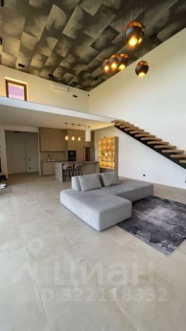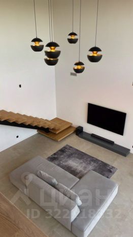 Дизайнерская мебель и освещение. Особый акцент - лестница на металлическом каркасе со ступенями из бука (8 см.).