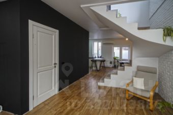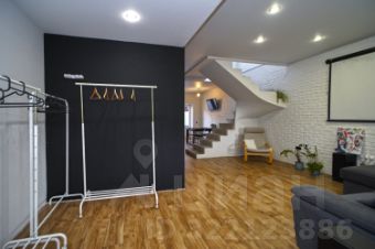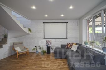 На первом этаже расположены кухня и просторная гостиная с проектором , сан.узел , лестница на второй этаж .
