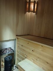 - Уникальная планировка: первый этаж включает большую гостиную-кухню, две спальни, удобную сауну, душевую кабинку и раздельный санузел.