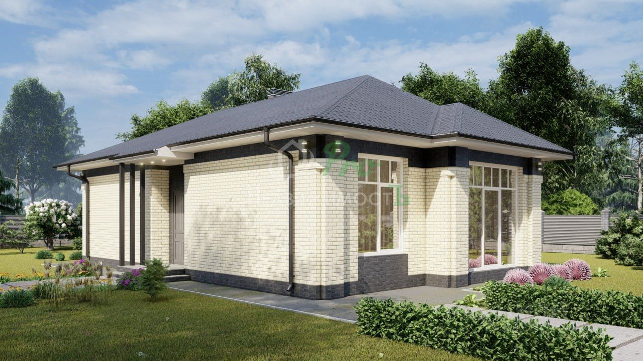 Кирпичный дом в селе Кухаривка общей площадью 100 кв.м. с 2 спальнями, гостиной, кухней, совмещенным санузлом и террасой. В карусели визуализация проекта дома, который возможно реализовать на вашем участке, либо построить на земле площадью 6,04 соток в Кухаривке. Подъездные пути - асфальт, все центральные коммуникации (газ, свет, вода) проходят по границе участка.