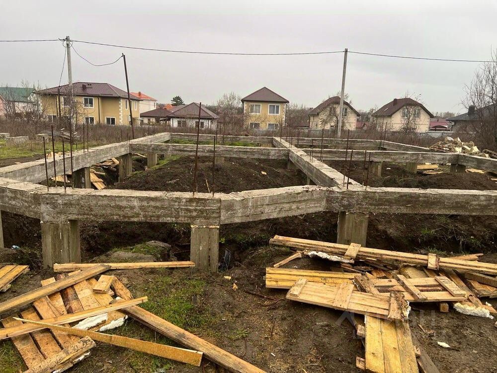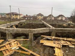 На участке построен фундамент на столбах, планировалась постройка двухэтажного дома.