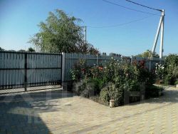 Во дворе забетонированные дорожки, установлены откатные ворота.