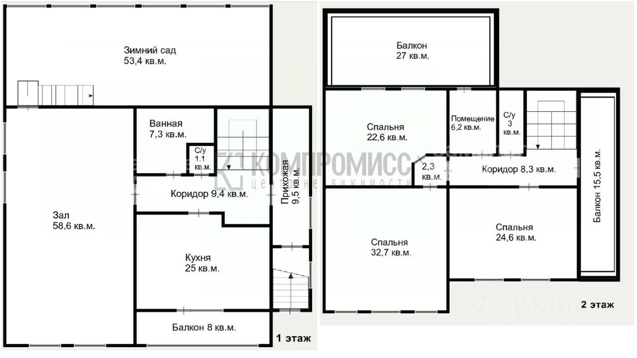На 2 этаже: 3 спальни, сан. узел, коридор, балкон и великолепная терраса.
